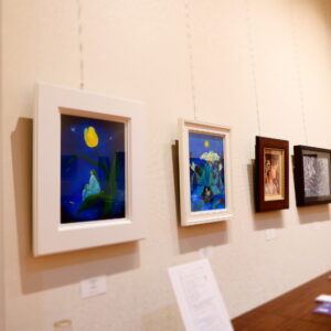 今回は特に現代作家の作品を多く展示しましたが、その中でも宮崎出身で現在大変な活躍を見せている日本画家の外山寛子、白日会等で活躍する津絵太陽といった画家の作品は初めて観る方も多く、その技術の高さに皆驚きを隠せませんでした。また他にも以前当ギャラリーでも個展を開催していただいた川村愛(延岡市出身)、児玉美音子(川南町)、日高康志(日向市出身)、みよこみよこ(延岡市)、陶芸家の泰田久史(延岡市出身)、日本画家の北川朔(延岡市出身)の作品など、多くの方に楽しんでいただけたものと思います。